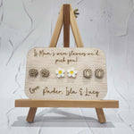 Each pair features surgical stainless steel earring posts and backings, ideal for sensitive ears. With the sentiment, "If Mums were flowers – I would always pick you," this set makes a heartfelt gift for mothers, daughters, or anyone who appreciates the beauty of flowers.