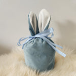 Add a touch of joy to Easter morning with our Small Easter Bag in Blue. Perfectly sized for little treats, this personalised bag will be a delightful surprise for kids and adults alike. Made from soft polyester with a fine velvet finish, each bag is personalised with a name in elegant white vinyl, creating a special keepsake that can be used year after year.