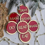 Each tag is lovingly made from premium acrylic and engraved or cut with words like Want, Need, Wear, Read, Do, Make, Eat, and Share — helping you create a balanced and heartfelt gift experience that focuses on connection, not clutter.