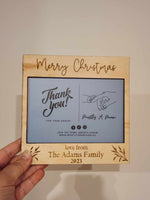Crafted from high-quality 3mm ply wood with a 3mm acrylic accent, each Magnetic Christmas Frame is engraved for a classic and natural look. Due to the unique nature of wood, slight colour variations make each piece one of a kind.